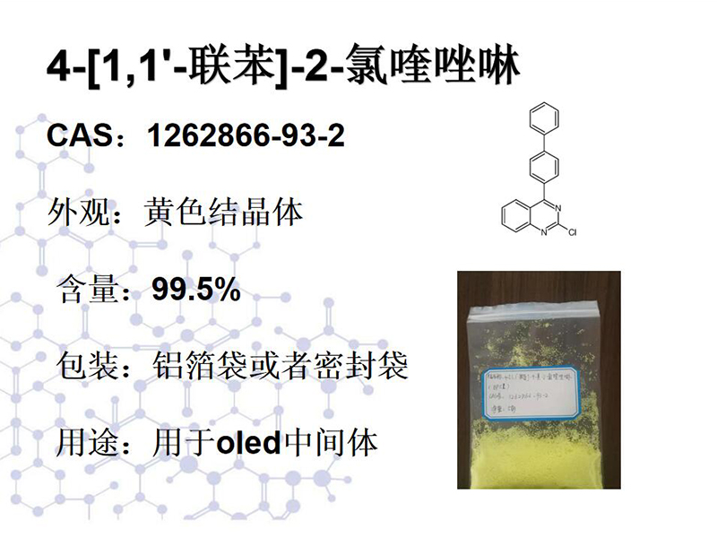 CAS:1262866-93-2 外觀:黃色結晶體 含量:99.5% 包裝:鋁箔袋或者密封袋 用途:用于oled中間體