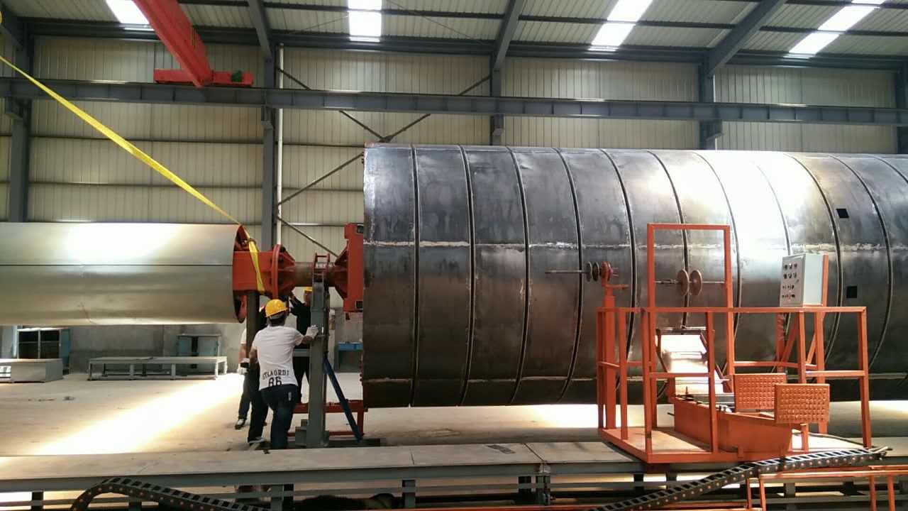 3、玻璃鋼化糞池一體成型內(nèi)加筋設(shè)備一般采購(gòu)2套設(shè)備能夠滿足從4-100立方的生產(chǎn),直徑分別是3200mm(40-100立方)\2300mm(15-30立方)\1800mm(4-12立方),2套設(shè)備占地15米X35米,車(chē)間如果上行車(chē)高度必須大約6米;針對(duì)一些客戶廠房高度小于6米的,我們可以不用行車(chē)脫模,制造一個(gè)升降、前進(jìn)后退的底盤(pán)小車(chē),解決脫模的問(wèn)題。